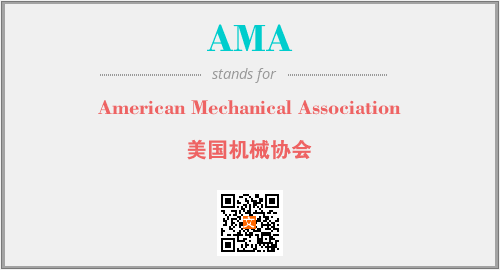 以上为American Mechanical Association英文缩略词AMA的中文解释,以及该英文缩写在英语的流行度、分类和应用领域方面的信息。