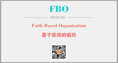 上述内容是“Faith Based Organization”作为“FBO”的缩写,解释为“基于信仰的组织”时的信息,以及英文缩略词FBO所代表的英文单词,其对应的中文拼音、详细解释以及在英文中的流行度和相关分类、应用领域及应用示例等。