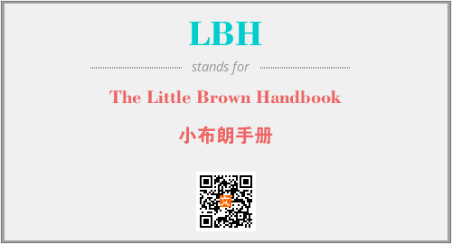 英文缩略词“LBH”经常作为“The Little Brown Handbook”的英文缩写来使用,中文表示:“小布朗手册”。本文将详细介绍英文缩写词LBH所代表英文单词,其对应的中文拼音、详细解释以及在英语中的流行度。此外,还有关于缩略词LBH的分类、应用领域及相关应用示例等。