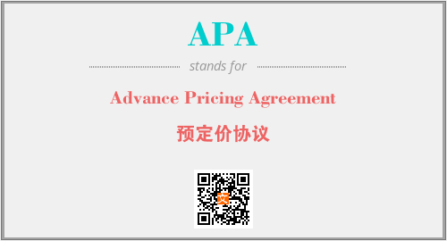 英文缩略词“APA”经常作为“Advance Pricing Agreement”的英文缩写来使用,中文表示:“预定价协议”。本文将详细介绍英文缩写词APA所代表英文单词,其对应的中文拼音、详细解释以及在英语中的流行度。此外,还有关于缩略词APA的分类、应用领域及相关应用示例等。