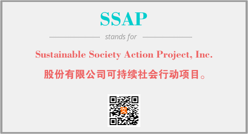 上述内容是“Sustainable Society Action Project, Inc.”作为“SSAP”的缩写,解释为“股份有限公司可持续社会行动项目。”时的信息,以及英文缩略词SSAP所代表的英文单词,其对应的中文拼音、详细解释以及在英文中的流行度和相关分类、应用领域及应用示例等。