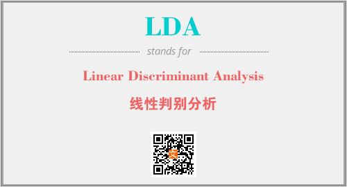 英文缩略词“LDA”经常作为“Linear Discriminant Analysis”的英文缩写来使用,中文表示:“线性判别分析”。本文将详细介绍英文缩写词LDA所代表英文单词,其对应的中文拼音、详细解释以及在英语中的流行度。此外,还有关于缩略词LDA的分类、应用领域及相关应用示例等。