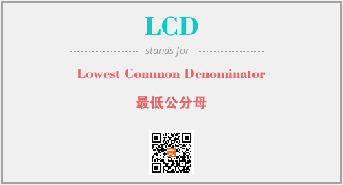英文缩略词“LCD”经常作为“Lowest Common Denominator”的英文缩写来使用,中文表示:“最低公分母”。本文将详细介绍英文缩写词LCD所代表英文单词,其对应的中文拼音、详细解释以及在英语中的流行度。此外,还有关于缩略词LCD的分类、应用领域及相关应用示例等。
