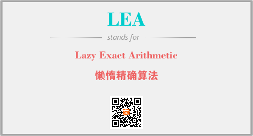 上述内容是“Lazy Exact Arithmetic”作为“LEA”的缩写,解释为“懒惰精确算法”时的信息,以及英文缩略词LEA所代表的英文单词,其对应的中文拼音、详细解释以及在英文中的流行度和相关分类、应用领域及应用示例等。