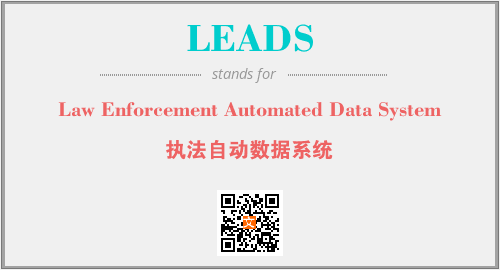 上述内容是“Law Enforcement Automated Data System”作为“LEADS”的缩写,解释为“执法自动数据系统”时的信息,以及英文缩略词LEADS所代表的英文单词,其对应的中文拼音、详细解释以及在英文中的流行度和相关分类、应用领域及应用示例等。