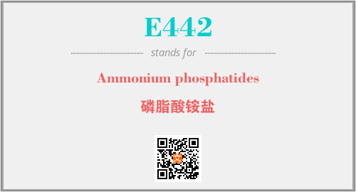上述内容是“Ammonium phosphatides”作为“E442”的缩写,解释为“磷脂酸铵盐”时的信息,以及英文缩略词E442所代表的英文单词,其对应的中文拼音、详细解释以及在英文中的流行度和相关分类、应用领域及应用示例等。