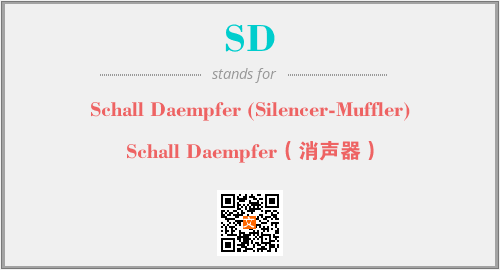 英文缩略词“SD”经常作为“Schall Daempfer (Silencer-Muffler)”的英文缩写来使用,中文表示:“Schall Daempfer(消声器)”。本文将详细介绍英文缩写词SD所代表英文单词,其对应的中文拼音、详细解释以及在英语中的流行度。此外,还有关于缩略词SD的分类、应用领域及相关应用示例等。