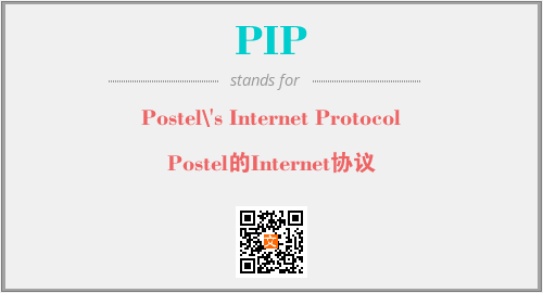 英文缩略词“PIP”经常作为“Postel\'s Internet Protocol”的英文缩写来使用,中文表示:“Postel的Internet协议”。本文将详细介绍英文缩写词PIP所代表英文单词,其对应的中文拼音、详细解释以及在英语中的流行度。此外,还有关于缩略词PIP的分类、应用领域及相关应用示例等。