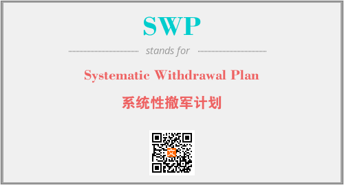 英文缩略词“SWP”经常作为“Systematic Withdrawal Plan”的英文缩写来使用,中文表示:“系统性撤军计划”。本文将详细介绍英文缩写词SWP所代表英文单词,其对应的中文拼音、详细解释以及在英语中的流行度。此外,还有关于缩略词SWP的分类、应用领域及相关应用示例等。