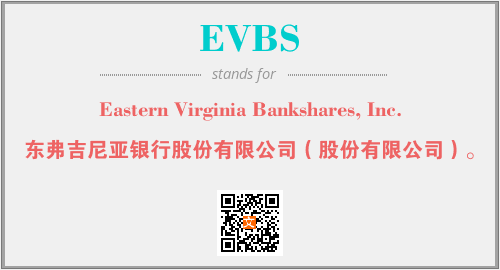 以上为Eastern Virginia Bankshares, Inc.英文缩略词EVBS的中文解释,以及该英文缩写在英语的流行度、分类和应用领域方面的信息。