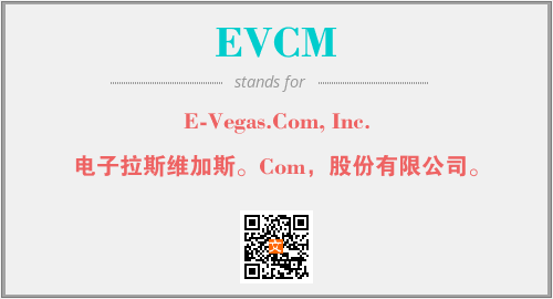 上述内容是“E-Vegas.Com, Inc.”作为“EVCM”的缩写,解释为“电子拉斯维加斯。Com,股份有限公司。”时的信息,以及英文缩略词EVCM所代表的英文单词,其对应的中文拼音、详细解释以及在英文中的流行度和相关分类、应用领域及应用示例等。