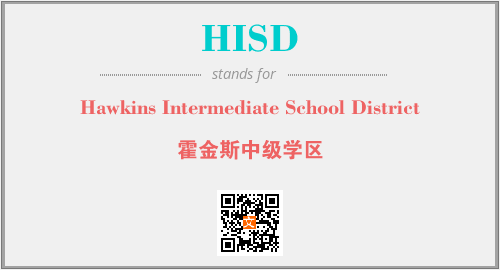 上述内容是“Hawkins Intermediate School District”作为“HISD”的缩写,解释为“霍金斯中级学区”时的信息,以及英文缩略词HISD所代表的英文单词,其对应的中文拼音、详细解释以及在英文中的流行度和相关分类、应用领域及应用示例等。