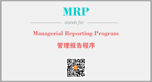 上述内容是“Managerial Reporting Program”作为“MRP”的缩写,解释为“管理报告程序”时的信息,以及英文缩略词MRP所代表的英文单词,其对应的中文拼音、详细解释以及在英文中的流行度和相关分类、应用领域及应用示例等。