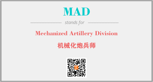 上述内容是“Mechanized Artillery Division”作为“MAD”的缩写,解释为“机械化炮兵师”时的信息,以及英文缩略词MAD所代表的英文单词,其对应的中文拼音、详细解释以及在英文中的流行度和相关分类、应用领域及应用示例等。