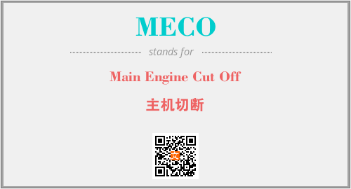 上述内容是“Main Engine Cut Off”作为“MECO”的缩写,解释为“主机切断”时的信息,以及英文缩略词MECO所代表的英文单词,其对应的中文拼音、详细解释以及在英文中的流行度和相关分类、应用领域及应用示例等。
