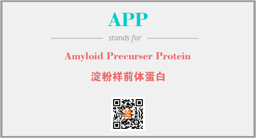 上述内容是“Amyloid Precurser Protein”作为“APP”的缩写,解释为“淀粉样前体蛋白”时的信息,以及英文缩略词APP所代表的英文单词,其对应的中文拼音、详细解释以及在英文中的流行度和相关分类、应用领域及应用示例等。