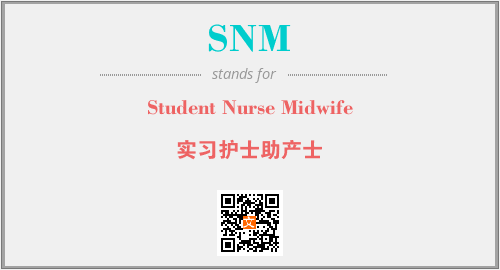 上述内容是“Student Nurse Midwife”作为“SNM”的缩写,解释为“实习护士助产士”时的信息,以及英文缩略词SNM所代表的英文单词,其对应的中文拼音、详细解释以及在英文中的流行度和相关分类、应用领域及应用示例等。
