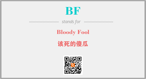 上述内容是“Bloody Fool”作为“BF”的缩写,解释为“该死的傻瓜”时的信息,以及英文缩略词BF所代表的英文单词,其对应的中文拼音、详细解释以及在英文中的流行度和相关分类、应用领域及应用示例等。