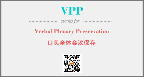 以上为Verbal Plenary Preservation英文缩略词VPP的中文解释,以及该英文缩写在英语的流行度、分类和应用领域方面的信息。