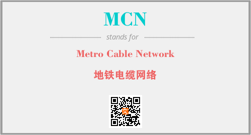 英文缩略词“MCN”经常作为“Metro Cable Network”的英文缩写来使用,中文表示:“地铁电缆网络”。本文将详细介绍英文缩写词MCN所代表英文单词,其对应的中文拼音、详细解释以及在英语中的流行度。此外,还有关于缩略词MCN的分类、应用领域及相关应用示例等。