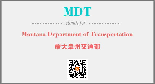 上述内容是“Montana Department of Transportation”作为“MDT”的缩写,解释为“蒙大拿州交通部”时的信息,以及英文缩略词MDT所代表的英文单词,其对应的中文拼音、详细解释以及在英文中的流行度和相关分类、应用领域及应用示例等。