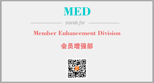 英文缩略词“MED”经常作为“Member Enhancement Division”的英文缩写来使用,中文表示:“会员增强部”。本文将详细介绍英文缩写词MED所代表英文单词,其对应的中文拼音、详细解释以及在英语中的流行度。此外,还有关于缩略词MED的分类、应用领域及相关应用示例等。