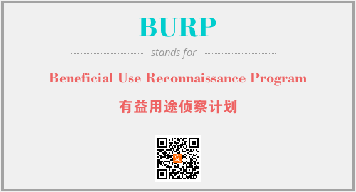 上述内容是“Beneficial Use Reconnaissance Program”作为“BURP”的缩写,解释为“有益用途侦察计划”时的信息,以及英文缩略词BURP所代表的英文单词,其对应的中文拼音、详细解释以及在英文中的流行度和相关分类、应用领域及应用示例等。
