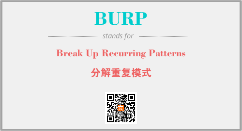 上述内容是“Break Up Recurring Patterns”作为“BURP”的缩写,解释为“分解重复模式”时的信息,以及英文缩略词BURP所代表的英文单词,其对应的中文拼音、详细解释以及在英文中的流行度和相关分类、应用领域及应用示例等。