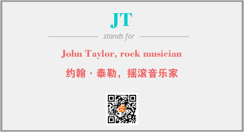 上述内容是“John Taylor, rock musician”作为“JT”的缩写,解释为“约翰·泰勒,摇滚音乐家”时的信息,以及英文缩略词JT所代表的英文单词,其对应的中文拼音、详细解释以及在英文中的流行度和相关分类、应用领域及应用示例等。