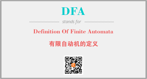 上述内容是“Definition Of Finite Automata”作为“DFA”的缩写,解释为“有限自动机的定义”时的信息,以及英文缩略词DFA所代表的英文单词,其对应的中文拼音、详细解释以及在英文中的流行度和相关分类、应用领域及应用示例等。