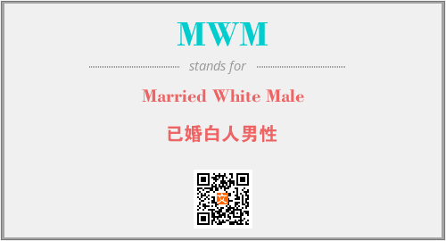 上述内容是“Married White Male”作为“MWM”的缩写,解释为“已婚白人男性”时的信息,以及英文缩略词MWM所代表的英文单词,其对应的中文拼音、详细解释以及在英文中的流行度和相关分类、应用领域及应用示例等。