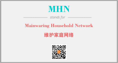 上述内容是“Mainwaring Household Network”作为“MHN”的缩写,解释为“维护家庭网络”时的信息,以及英文缩略词MHN所代表的英文单词,其对应的中文拼音、详细解释以及在英文中的流行度和相关分类、应用领域及应用示例等。