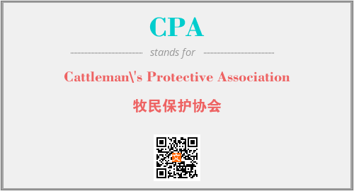 英文缩略词“CPA”经常作为“Cattleman\'s Protective Association”的英文缩写来使用,中文表示:“牧民保护协会”。本文将详细介绍英文缩写词CPA所代表英文单词,其对应的中文拼音、详细解释以及在英语中的流行度。此外,还有关于缩略词CPA的分类、应用领域及相关应用示例等。