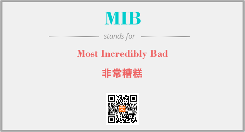 上述内容是“Most Incredibly Bad”作为“MIB”的缩写,解释为“非常糟糕”时的信息,以及英文缩略词MIB所代表的英文单词,其对应的中文拼音、详细解释以及在英文中的流行度和相关分类、应用领域及应用示例等。