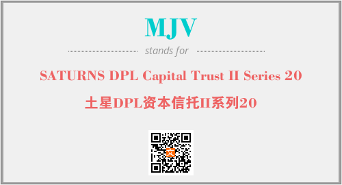 以上为SATURNS DPL Capital Trust II Series 20英文缩略词MJV的中文解释,以及该英文缩写在英语的流行度、分类和应用领域方面的信息。