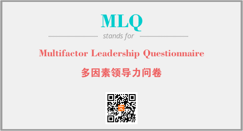 上述内容是“Multifactor Leadership Questionnaire”作为“MLQ”的缩写,解释为“多因素领导力问卷”时的信息,以及英文缩略词MLQ所代表的英文单词,其对应的中文拼音、详细解释以及在英文中的流行度和相关分类、应用领域及应用示例等。