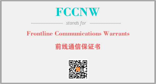 上述内容是“Frontline Communications Warrants”作为“FCCNW”的缩写,解释为“前线通信保证书”时的信息,以及英文缩略词FCCNW所代表的英文单词,其对应的中文拼音、详细解释以及在英文中的流行度和相关分类、应用领域及应用示例等。