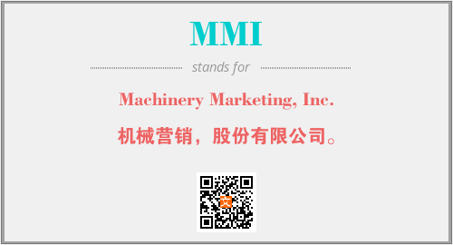 上述内容是“Machinery Marketing, Inc.”作为“MMI”的缩写,解释为“机械营销,股份有限公司。”时的信息,以及英文缩略词MMI所代表的英文单词,其对应的中文拼音、详细解释以及在英文中的流行度和相关分类、应用领域及应用示例等。