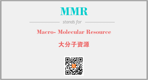 英文缩略词“MMR”经常作为“Macro- Molecular Resource”的英文缩写来使用,中文表示:“大分子资源”。本文将详细介绍英文缩写词MMR所代表英文单词,其对应的中文拼音、详细解释以及在英语中的流行度。此外,还有关于缩略词MMR的分类、应用领域及相关应用示例等。