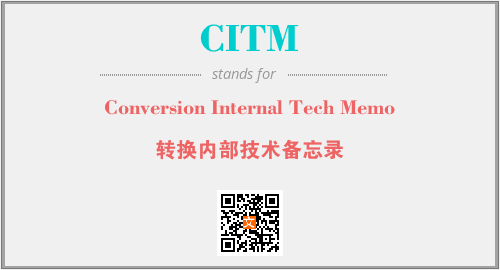 上述内容是“Conversion Internal Tech Memo”作为“CITM”的缩写,解释为“转换内部技术备忘录”时的信息,以及英文缩略词CITM所代表的英文单词,其对应的中文拼音、详细解释以及在英文中的流行度和相关分类、应用领域及应用示例等。