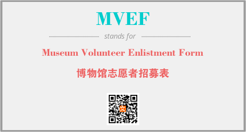 英文缩略词“MVEF”经常作为“Museum Volunteer Enlistment Form”的英文缩写来使用,中文表示:“博物馆志愿者招募表”。本文将详细介绍英文缩写词MVEF所代表英文单词,其对应的中文拼音、详细解释以及在英语中的流行度。此外,还有关于缩略词MVEF的分类、应用领域及相关应用示例等。