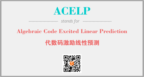 以上为Algebraic Code Excited Linear Prediction英文缩略词ACELP的中文解释,以及该英文缩写在英语的流行度、分类和应用领域方面的信息。