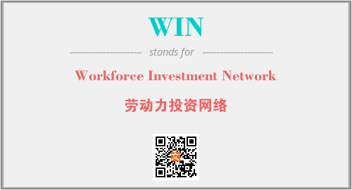 上述内容是“Workforce Investment Network”作为“WIN”的缩写,解释为“劳动力投资网络”时的信息,以及英文缩略词WIN所代表的英文单词,其对应的中文拼音、详细解释以及在英文中的流行度和相关分类、应用领域及应用示例等。