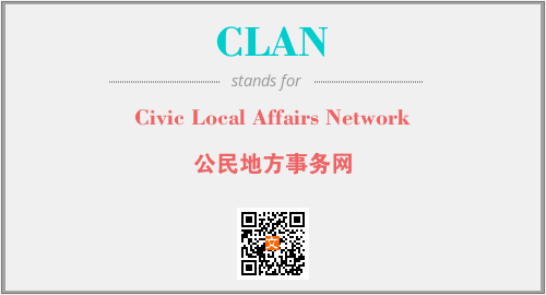 英文缩略词“CLAN”经常作为“Civic Local Affairs Network”的英文缩写来使用,中文表示:“公民地方事务网”。本文将详细介绍英文缩写词CLAN所代表英文单词,其对应的中文拼音、详细解释以及在英语中的流行度。此外,还有关于缩略词CLAN的分类、应用领域及相关应用示例等。