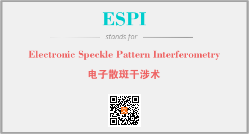 上述内容是“Electronic Speckle Pattern Interferometry”作为“ESPI”的缩写,解释为“电子散斑干涉术”时的信息,以及英文缩略词ESPI所代表的英文单词,其对应的中文拼音、详细解释以及在英文中的流行度和相关分类、应用领域及应用示例等。