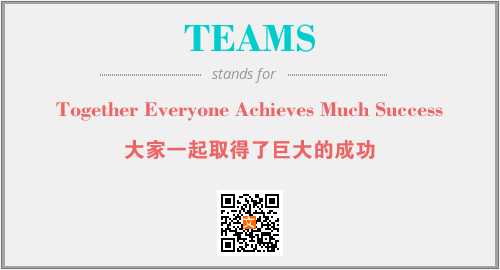 以上为Together Everyone Achieves Much Success英文缩略词TEAMS的中文解释,以及该英文缩写在英语的流行度、分类和应用领域方面的信息。