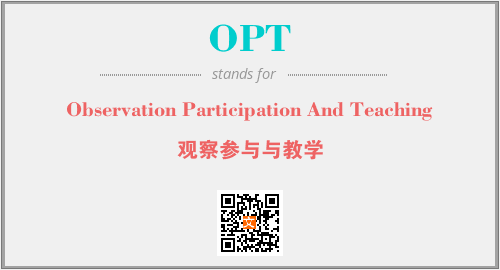 上述内容是“Observation Participation And Teaching”作为“OPT”的缩写,解释为“观察参与与教学”时的信息,以及英文缩略词OPT所代表的英文单词,其对应的中文拼音、详细解释以及在英文中的流行度和相关分类、应用领域及应用示例等。