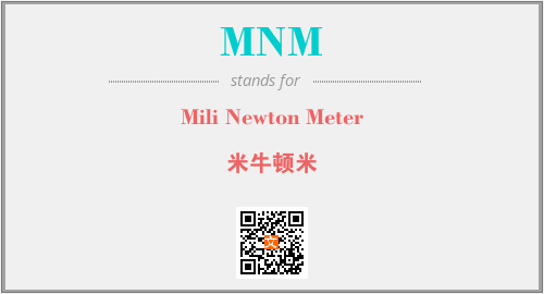 以上为Mili Newton Meter英文缩略词MNM的中文解释,以及该英文缩写在英语的流行度、分类和应用领域方面的信息。