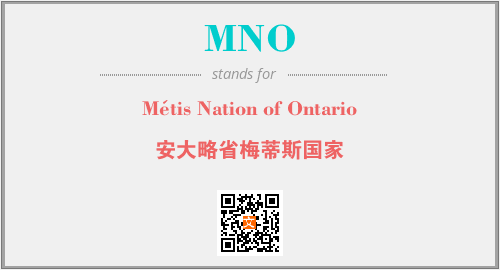 上述内容是“Métis Nation of Ontario”作为“MNO”的缩写,解释为“安大略省梅蒂斯国家”时的信息,以及英文缩略词MNO所代表的英文单词,其对应的中文拼音、详细解释以及在英文中的流行度和相关分类、应用领域及应用示例等。