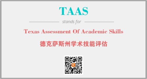 上述内容是“Texas Assessment Of Academic Skills”作为“TAAS”的缩写,解释为“德克萨斯州学术技能评估”时的信息,以及英文缩略词TAAS所代表的英文单词,其对应的中文拼音、详细解释以及在英文中的流行度和相关分类、应用领域及应用示例等。